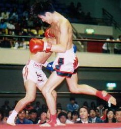 ワンツーで相手を下がらせ、距離を詰めて首相撲からのヒザ。これを軸にしてロー、ミドル、ハイを自在にヒット、またはボディへの正確な打ち分け。