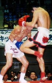 王者に挑戦するのは田中信一。ボクシング日本王者の経歴を持つ、パンチ型のベテラン選手。キックのタイトルとは無縁だったが、今年全日本キック連盟のフライ級王者山田隆博を逆転KOで下した後ランキング1位に。攻撃はパンチに大きく傾いている田中だが、その一発が怖い。