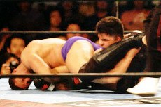 開始直後、いきなりタックルを仕掛けるブイシェ。対するデルーシアはロープ際でガードポジション。その後もリング中央に移動しつつ、上から巧みにパンチを入れていくブイシェに対して、デルーシアのガードが段々と甘くなる。その後、猪木アリ状態の上から、ブイシェがデルーシアの両足を捕らえようとするが必死に抵抗するデルーシア。思いきって飛び込んだブイシェ、あっけなくマウントポジションに。パンチを入れるが一瞬の隙をついて腕を取ると、そのまま腕ひしぎ逆十字の体勢に。オマー・ブイシェの圧勝となった。