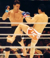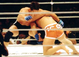 スタンドファイトに徹したメッツア−はパンチを磨きこんで、この試合に臨んでいた。左右のストレ−トを主軸に、桜庭と徹底したスタンドファイトを挑み、桜庭のタックルをことごとく潰す。桜庭もスタンドで左ハイをヒット、アグレッシブにスタンドファイトに応じるが、メッツア−をテイクダウン出来ないのが痛い。