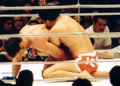 そこで、三者審判の判定に入るが、そのすべてが30−30のドロ−で延長が宣告されるや、セコンドについたケン・シャムロックが猛烈抗議。メッツア−に退場を命じる。