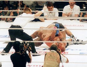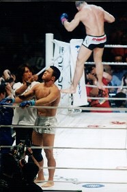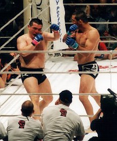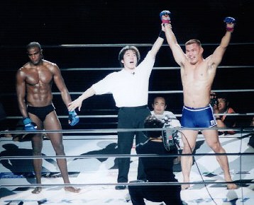せき髄攻撃のイエローも含めて、ペレの猛攻をかわしつつ、2R優勢にゲームを運めた松井が判定勝ちをもぎ取った。試合後マイクを取った松井は「次回プライドでシウバ、俺と戦おう!」とアピール。今大会屈指の名勝負で客席からも熱い支持を勝ち取り、ついに松井がブレイクの時を迎えたようだ。