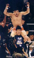 本当に桜庭選手を信じて良かったです。島田レフリーが両手を交差させて、ゴングが鳴ったときに近くにいる全然知らないニーちゃんと肩を叩き合い喜んでしまいました。こんな言い方は語弊があるかもしれませんが、これほど皆が感動できた瞬間と言うのももうないような気がします。