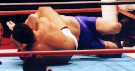 その腕をとって十字にいくノゲイラ。これでジ・エンド。アイブルの欠場という事情はあったにせよ、リングスは、余りに簡単にノゲイラを決勝へと進めさせてしまった。