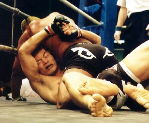 1R村濱がテイクダウン。トップポジションで立ち上がり、何とジャイアントスイングを1.5回転成功させる。だがボウも下からの羽根折り固め、側転パスガードで魅せる。2Rいきなりボウがテイクダウン。素早く横四方、マウント、バックを取り優位に進めるが、村濱は辛くも逃げ切ると、今度はボウのバックを取ってジャーマンスープレックスに成功する。だがボウは終盤にももう一度羽根折り固めを極めかける。村濱は入場時のTシャツとおり「芸人魂」を見せ付けたが、結局は実質のある攻めを続けたボウに軍配が上がった。