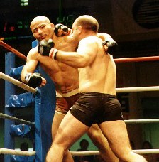 ばばんば恒例の入場シーン、今回は虚無僧のコスプレで観客を沸かす。だが見せ場はここまで。クックがコーナーに詰めると強力なフックの連打でばばんばを速攻ノックアウト。2年ぶりの日本マットでもハードパンチャーぶりを見せ付けた。 結果一覧に戻る ← 前の試合 / 次の試合 →