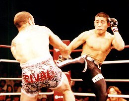 序盤鋭いローキックでギルバートをふらつかせる。打撃対策に隙があるようだが、植松のタックルは見事切ってみせる。植松はパワーに苦しんだことを試合後明かしていた。