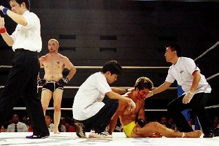 パワーの有る打撃で圧倒したギルバートが、3R終了直前、グラウンドパンチから中尾を流血に追い込みドクターストップで勝利。