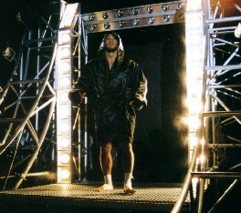 しかし、ルミナの姿を初めて目にする浪速っこにはそんな事情は関係ない。雑誌で、ビデオでしか目にしたことのないス−パ−スタ−の登場を一目見ようと、ファン達が花道に殺到する。入場門は後楽園でも設営されることのない派手なシルバ−トラスの、ビッグマッチ仕様だ。スモ−クのなか、イルミネ−ションに浮かび上がったルミナの表情は想像以上に硬い。やはり復帰戦であること、メインイベンタ−であることの重責がのし掛かっているのだろうか。
