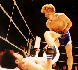 秋本、いきなり突進してタックル。太田は堪えるが、倒されてガードへ。太田は足を利かせてなんとかパスさせない。秋本がまわったところを返して、今度は太田が倒すがすぐ返されて下になる。秋本は、上からパスしてハーフ、アキレスなど狙う。