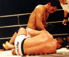 一方、宇野にとってこの一戦は、ウエルター級チャンピオンの座を奪って以来二度目の試合となる。確かにこの勝利で宇野はチャンピオンベルトを捲いた。しかし、敗れたルミナの存在感を越えたかといえばさにあらず。あいかわらず”修斗不動のエ−ス=佐藤ルミナ”であり、宇野は”修斗の王子様”という感が強い。実績はともかく、ルミナの前で宇野の存在感はまだまだ”二番手”扱いである。世間の評価を「王子様」から「王者」に書き換えるには、まだ5月の勝利では足りない。あの試合がフロックでなかったことを証明する為には、ファンの意識から完全にルミナの影を吹き払ってしまう、インパクトの強い勝利を飾るしかないのだ。その相手として、今回のペデネ−ラス以上の相手は 存在しない。昨年のVTJでルミナを非情の血祭りに沈めたこの男を葬り去れば、頑固な世論も文句なく宇野の「戴冠」を認めるだろう。今回のVTJのマッチメイクには”対ブラジル”という表テ−マに対して、もう一つ、「先輩越え」という裏テ−マが騙し絵のように仕掛けられている。こうしたテ−マ設定の巧さは坂本プロデュサ−の真骨頂と言うべきものだ。朝日の背中を負う、巽・池田にそれぞれノ−ゲラ、ホ−キをぶつけて、その世代闘争的テ−マに仕立て上げたのもさることながら、今回の宇野のように、既にルミナを倒しながらまだその影響下から抜け出せない状況を見るや、昨年のルミナの敗戦が二重写しになるように、この舞台にペデネ−ラスをブッキングしてみせる。「この難問をクリアしてこそ、チャンピオンとして認める」と言わんばかりに。