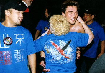 近藤は船木譲りのパンクラスマーク入りの着流し姿に日本刀を持っての入場。セコンドには高橋、石井の他、ブラジルでの柔術道場巡りから戻った藤田和之の姿もあった。