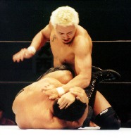 渡部謙吾、関西初見参。関西のファンにとって、今大会最大のテーマはこれだったのではないか。実際誰よりも大きな存在感を振りまき、多くの声援を集めていたのはこの男だった。そして、この日は初めての対日本人戦。しかも、若手のみの布陣による興行、“Neo Blood Challenge”。デビュー戦以来、バス・ルッテン、ジェイソン・ゴドシーと、キャリア・実力を兼ね備えた強豪外人選手と対戦し、短い時間で敗れてきた謙吾が、初めて相応の相手と対峙し、その実力を測定される、非常に興味深い機会となった。しかし、対する稲垣はパンクラス旗揚げに立ち会った男。既に若手ではなく、中堅だ。ポッと出の新人に負ける気はさらさらない。そして、これだけ注目を集める男に対するジェラシーもあるだろう。コイツにだけは、絶対に負けるわけにはいかない。そう思って、リングに上がったはずだ。