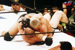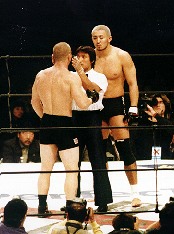 注目のタトゥー対決。しかも、この日レガースを付けていないローバーの右足首には、青い炎に包まれたパンクラスのクロス・ロゴが・・・これはいったい何を意味するのか?試合は予想に反して、スタンドの攻防がほとんどなく、触れるか触れないか程度のパンチを互いに出したあと、ローバーが誘ってグラウンドに。