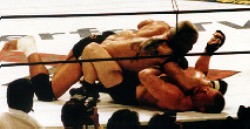上になったローバーがジリジリと謙吾の腕と首を取り、肩固めの体制に。セオリーとしては第四試合のタナーと全く同じ。しかし、ローバーが下手なのか謙吾が上手かったのか、謙吾は難なく体を入れ替えて上になってしまい、挙句に簡単に腕を引抜いてハーフガードながら上になることに成功する。