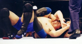 丂惵僐乕僫乕偐傜媨嶈丄愒僐乕僫乕偐傜曅悾偺弴偱儕儞僌傊尰傟傞丅儕儞僌傊忋偑偭偨椉幰偼忋拝傪扙偖丅柧傜偐偵懱偑掲傑偭偰側偄丅寖偟偄愛惗偱恎懱傪嶌傝忋偘偰偄傞僷儞僋儔僗偺僾儘慖庤傪尒姷傟偨栚偵偼丄偦偺棊嵎偺戝偒偝偑婥偵偐偐偐傞丅彉斦偺懪寕愴傕丄椡姶偑姶偠傜傟側偄嶶枱側彾掙偺墳廣偐傜巒傑傞丅媨嶈偺曽偵傗傗暘偑偁傝丄偦傟傪寵偆傛偆偵曅悾偑僞僢僋儖傊丅娙扨偵偦傟傪偑傇偭偰僶僢僋傪庢偭偨媨嶈偑僠儑乕僋傪巇妡偗傞傕丄曅悾偼僞乕儞丅偦偺傑傑儅僂儞僩偵側偭偨忬懺偐傜媨嶈偼廫帤傪慱偆偑丄偡偐偝傟壓偵丅偟偐偟丄偡偖偝傑儕僶乕僒儖偵惉岟偟丄帺傜棫偪忋偑傝僗僞儞僪傪梫媮偡傞丅堦楢偺峌杊偱丄椉幰偺幚椡嵎偼偼偭偒傝偲尒偊偨丅偙偺屻傕丄曅悾偺僞僢僋儖傪捵偟媨嶈偑庡摫尃傪埇傞揥奐偑擇搙孞傝曉偝傟丄擇搙栚偵媨嶈偼僊儘僠儞丒僠儑乕僋偐傜僶僢僋傪庢偭偰儅僂儞僩丅曅悾偑僞乕儞偟傛偆偲偡傞偲丄崱搙偼偒偭偪傝偲僶僢僋丒儅僂儞僩偐傜僠儑乕僋丒僗儕乕僷乕偱掲傔忋偘丄偁偭偝傝偲帋崌傪寛傔偨丅