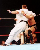 1月8日にルイジアナで開かれるUFC18に出場が予定されている高阪は、試合前にTV収録用のコメントでこう語っていた。はっきり言ってしまえば「やる気なし」に聞こえるし、多くの高阪ファンにとっても、今回のトーナメントよりもUFCに体力を温存してほしいというのが本心だろうから、同情できなくもない。でも、同時に高阪は「決勝でジャパンAチームと当たって優勝したい」とも語っており、微妙な心理状態をうかがわせてくれる。これから戦うズーエフは既に1試合戦っており、体力をいくらか消費しているので高阪には有利。果たして、抜き試合にしつつも勝ち抜くことができるか?