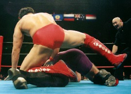 だが、ロシアBチームは、成瀬戦でのクレメンチェフがロープをつかんでしまったための自殺点と、田村戦でのコピィロフの疑惑のダウンがありながらも、大将戦を判定にまで持ち込めたのだから、その辺りを思い起こせば、観客もこの判定は納得できるかもしれない。高阪も決して手を抜いたのではなく、今日のところはズーエフのほうが一枚上手だったというだけである。ともかく、エカテリンブルグ軍団はロシアの火を守った。しかも前田が優勝候補に上げたチームに勝った。同日力で圧勝したグルジアチームにも、持ち前の粘り強さで勝ち上がりそうな勢いを感じる。